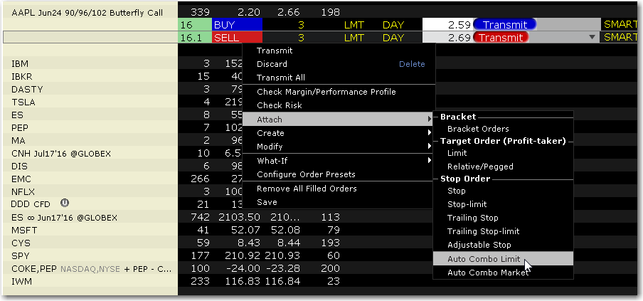 4. Submit the parent order. When it fills, the auto combo limit order is automatically submitted.